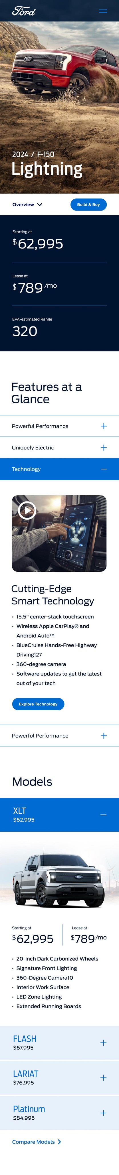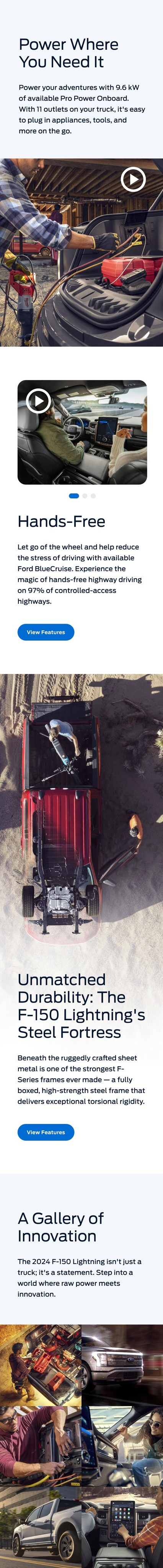 The launch site offers a concise overview of a the F-150 Lightning's key features, and feature pages provide in-depth information for consumers to make informed decisions. Maintenance to these pages demand dedicated teams that work tirelessly throughout the vehicle's life cycle.